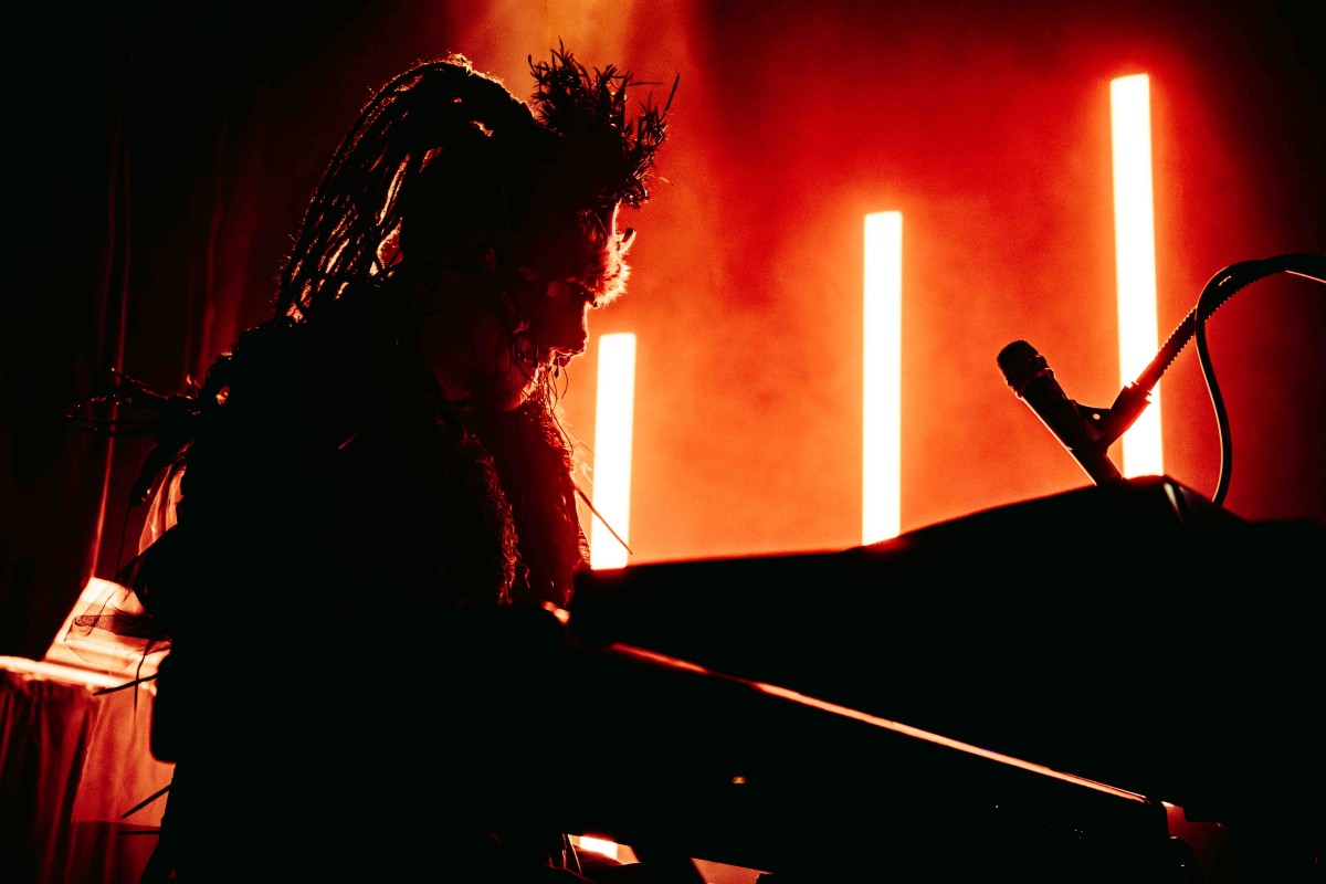 The opening passages are restrained, lots of beautiful delicate piano, distant sampled voices, visuals projected between the duo. Then the shift comes. The sound grows, drums crash in, and suddenly we have lift off and the whole room feels so much bigger than it is. The Fleece doesnโt just get louder it feels like it transforms and full immersion begins.